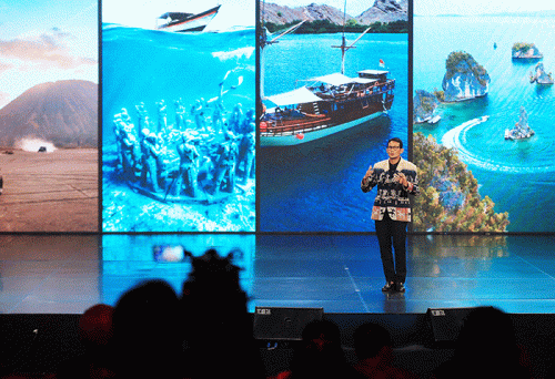 IDXChannel - Menteri Pariwisata dan Ekonomi Kreatif/Kepala Badan Pariwisata dan Ekonomi Kreatif Sandiaga Salahuddin Uno menyampaikan sambutan sekaligus melaunching Anugerah Desa Wisata Indonesia (ADWI) 2022 dengan tema Kebangkitan Ekonomi Demi Indonesia Bangkit di Ciputra Artpreneur Theater Kuningan, Jakarta, Jumat (18/2/2022).