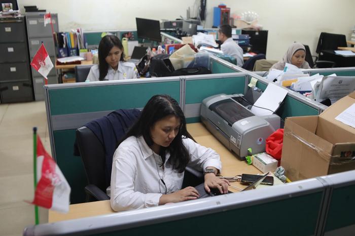 IDXChannel - Aparatur Sipil Negara (ASN) menyelesaikan pekerjaan di Balai Kota DKI Jakarta, Rabu (1/4/2026).