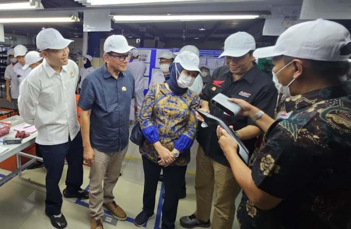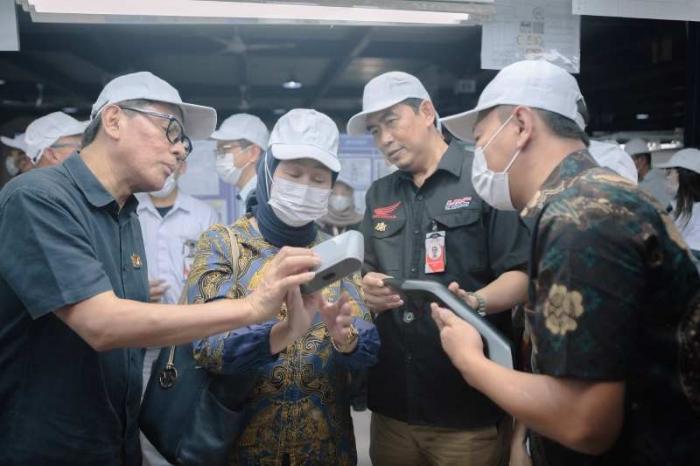 IDXChannel – Direktur Operasional IKM binaan Astra melalui Yayasan Dharma Bhakti Astra (YDBA), PT Arkha Industries Indonesia, Bagus Setiawan (kanan) menunjukkan hasil improvementnya dalam proses painting kepada Ketua Pengurus YDBA Rahmat Samulo (kiri), Direktur Industri Kecil dan Menengah Logam, Mesin, Elektronika dan Alat Angkut Kementerian Perindustrian RI (Kemenperin RI) Ir. Dini Hanggandari, MSi (kedua kiri) dan Quality Assurance Head PT Astra Honda Motor (PT AHM) Setyo Budi Anang Yuliarto (kedua kanan) pekan lalu di Purwakarta.