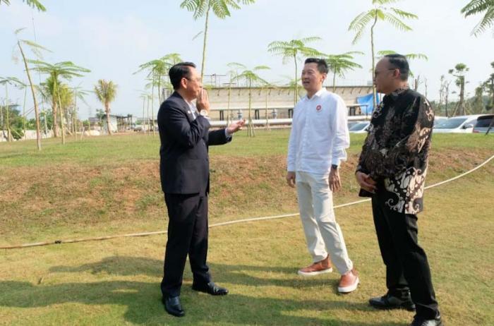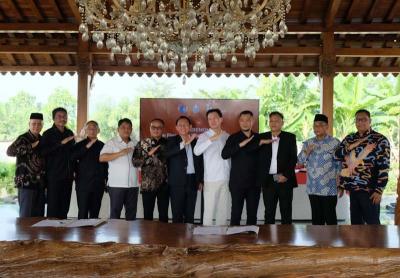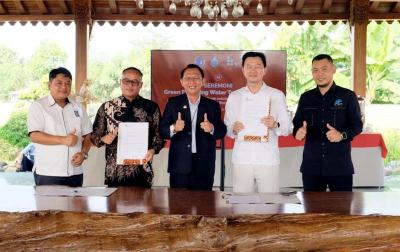 IDXChannel - Chief Bussines Officer PT Bank Hibank Indonesia Rudy Gomedi (kedua kanan) bersama Direktur Utama PT NBF Tirta Sejahtera dan PT Bintang Mahameru Sejahtera Saipul Anwar (kedua kiri), disaksikan Bupati Kabupaten Bekasi Dani Ramdan (tengah), Direktur Utama Perumda Tirta Bhagasasi Reza Lutfi (kanan), dan Direktur Utama Perumda Tirta Patriot Ali Imam Fariadi (kiri) menunjukkan nota kesepakatan kerja sama di Metland, Kabupaten Bekasi, Jawa Barat, Senin (29/7/2024).
