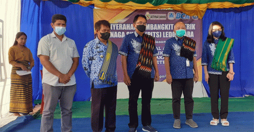 IDXChannel - Komisaris Independen BCA Cyrillus Harinowo (kedua kanan), Direktur BCA Antonius Widodo (tengah), EVP CSR BCA Inge Setiawati (kanan), Bupati Kabupaten Sumba Barat Daya Kornelius Kodi Mete (ketiga kiri) saat acara seremoni serah terima PLTS di Loura Sumba Barat Daya.