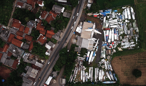 IDXChannel - Foto drone penampakan bangkai pesawat terbang tergeletak di sebuah tanah lapang di kawasan Kemang, Kabupaten Bogor, Jawa Barat, Senin (22/8/2022).