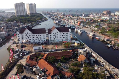 IDXChannel - Foto udara penampakan Rumah Susun Aquarium di kawasan Pasar Ikan, Penjaringan, Jakarta Utara, Selasa (17/8/2021).