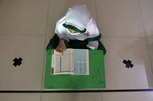IDXChannel - Anak-anak belajar membaca Alquran di Masjid Jami At Taqwa, Jakarta, Kamis (15/4/2021).