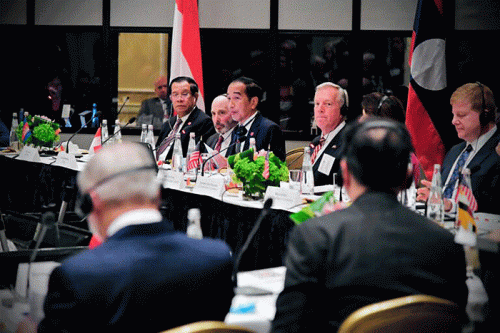 IDXChannel - Presiden Joko Widodo dan sejumlah pemimpin negara ASEAN bertemu dengan para pengusaha Amerika Serikat (AS) di Intercontinental the Willard Hotel, Washington DC, Kamis (12/5/2022).