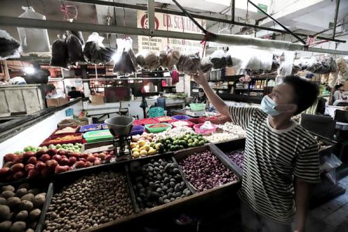 IDXChannel - Pedagang merapikan dagangannya di Pasar Kramat Jati, Jakarta Timur, Sabtu (8/5/2021). Bank Indonesia (BI) memperkirakan awal Mei 2021 terjadi inflasi sebesar 0,15 persen. Dengan perkembangan tersebut, perkiraan inflasi Mei 2021 secara tahun kalender sebesar 0,73 persen (year to date), dan secara tahunan sebesar 1,51 persen (year on year).