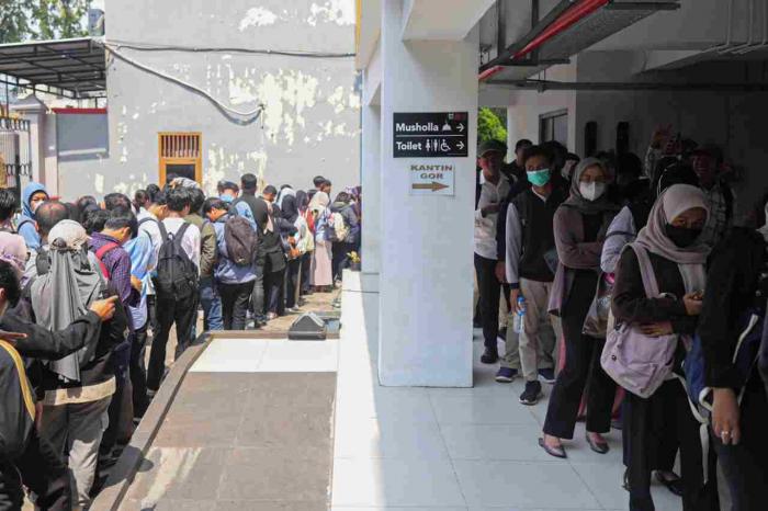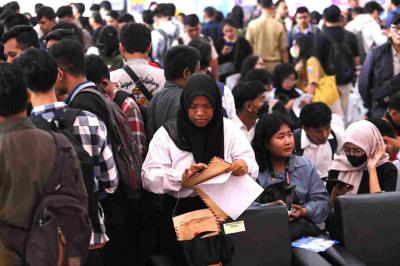IDXChannel - Ribuan pencari kerja mencari informasi lowongan pekerjaan saat acara Jakarta Job Fair yang digelar Pemprov DKI Jakarta di Gor Kemayoran, Jakarta Pusat, Selasa (6/5/2025).