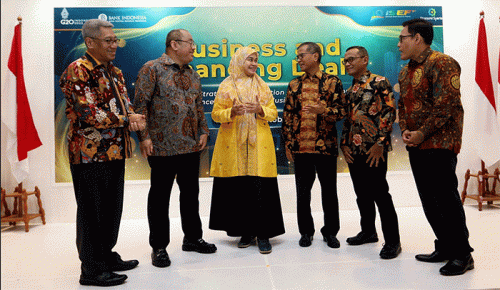 IDXChannel - (Dari Kiri ke Kanan) Direktur Treasury & International Banking BSI Moh Adib (keempat kiri) bersama Direktur Pengembangan Ekonomi Syariah DEKS Bank Indonesia Ita Rulina (ketiga kiri) dan Direktur-Direktur Bank Syariah yang menyepakati perjanjian kerjasama terkait SIPA berbincang di Jakarta.