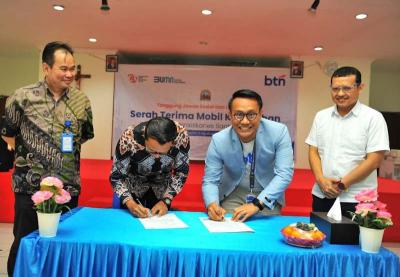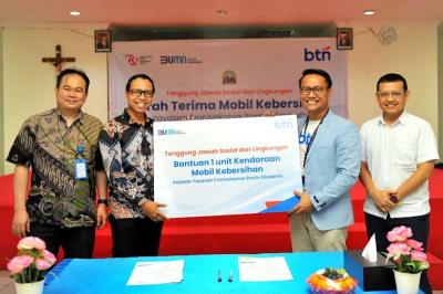 IDXChannel - Kepala Cabang PT Bank Tabungan Negara (Persero) Tbk Batam Wahyudi Gusti Antony bersama Kepala Departemen Community Development BTN Ary Ihsandi menyerahkan bantuan kepada Ketua Yayasan Fransiskanes Santa Elisabeth Nugroho Budi Santoso dan Direktur RS Santa Elisabeth Lubuk Baja Hendro di RS Santa Elisabeth, Batam, Kepulauan Riau, Jumat (9/8/2024).