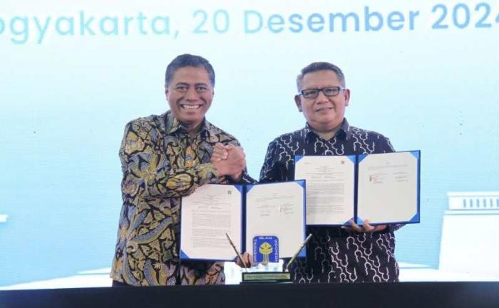 IDXChannel - Direktur Consumer PT Bank Tabungan Negara (Persero) Tbk Hirwandi Gafar dan Rektor Universitas Islam Indonesia Fathul Wahid menandatangani Nota Kesepahaman perihal Penyediaan Penggunaan Jasa dan Layanan Perbankan serta Dukungan untuk Pengembangan Civitas Akademika saat gelaran BTN Syariah Goes to Campus, di Yogyakarta, Jumat (20/12/2024).