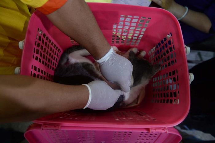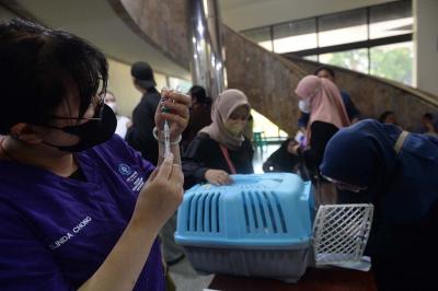 IDXChannel - Petugas menyuntikkan vaksin rabies ke seekor kucing peliharaan di Jakarta, Sabtu (11/10/2025).