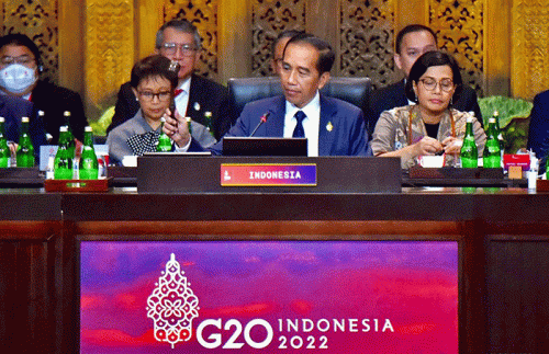 Jokowi didampingi oleh Menteri Luar Negeri Retno Marsudi dan Menteri Keuangan Sri Mulyani dimana keduanya merupakan 'Dua Srikandi Indonesia' yang menjadi kunci dalam diplomasi suksesnya keketuaan Indonesia di G20 meski dipengaruhi krisis di Ukraina.