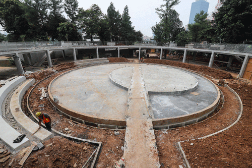 IDXChannel - Pekerja menyelesaikan proyek revitalisasi Taman Martha Tiahahu di kawasan Blok M, Jakarta Selatan, Rabu (13/7/2022).