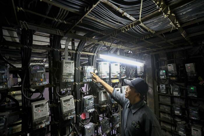 IDXChannel - Warga mengecek meteran listrik di Rusun Benhil 2, Jakarta, Minggu (8/2/2025).
