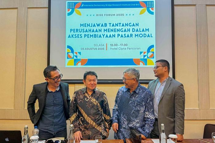 IDXChannel - Guru Besar FEB UI Prof. Budi Frensidy (kedua kiri) dalam diskusi RISE 2025 yang digelar oleh Indonesia Democracy Bridge Research Institut (Ind-Bri) di Jakarta, Selasa (5/8/2025).