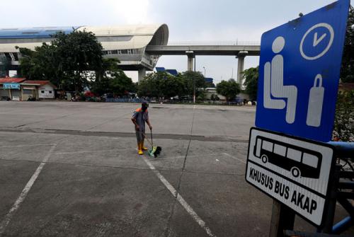 IDXChannel - Suasana terminal Kampung Rambutan, Jakarta Timur, Kamis (6/5/2021). Dinas Perhubungan DKI Jakarta melakukan penututupan sementara terminal Kampung Rambutan mulai 6 Mei - 17 Mei 2021 terkait larangan mudik yang dikeluarkan pemerintah.