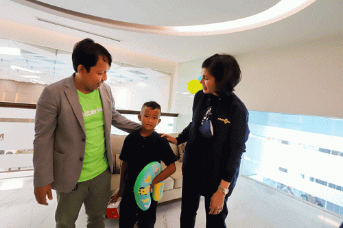 IDXChannel - Direktur Utama MNC Life Febriyani Sjofjan Yahya (kanan) bersama Founder DokterHub dr. Gery Wilianto (kiri) berbincang dengan peserta Khitan Ceria saat acara Peluncuran Penandatanganan Kerja Sama antara MNC Life dan DokterHub di MNC Financial Centre, MNC Center, Kebon Sirih, Jakarta Pusat, Rabu (29/6/2022).
