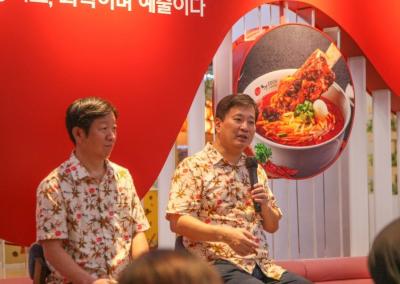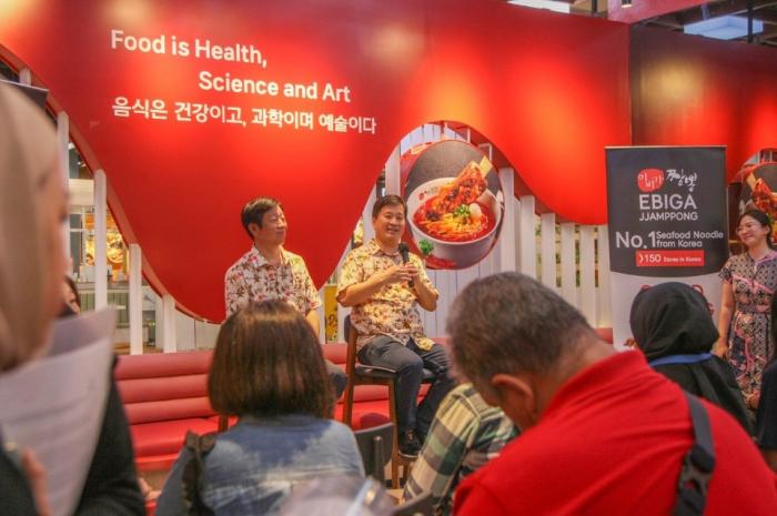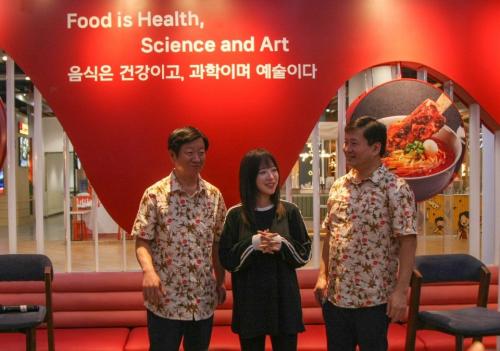 IDXChannel - (Kiri - kanan) Chairman of Ebiga Food Mr. Hyeck Nam Kwon, Youtuber Korea Tzuyang, dan Chairman of Boga Group Kusnadi Rahardja hadir pada acara peluncuran Ebiga Jjamppong, di Lippo Mall Puri, Jakarta, beberapa waktu lalu.