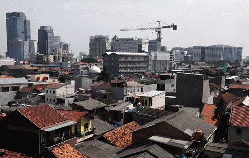 IDXChannel - Foto permukiman warga dan gedung bertingkat di kawasan Jakarta Pusat, Sabtu (6/8/2022).
