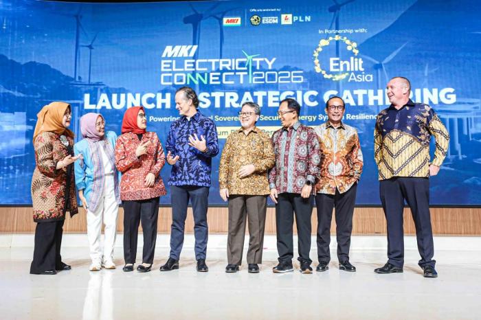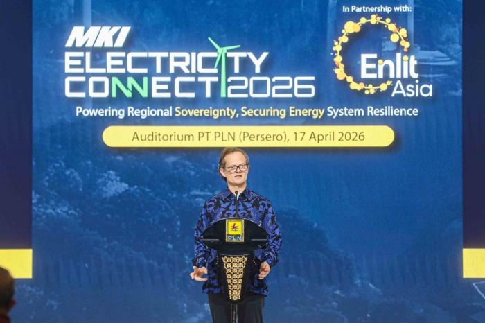 IDXChannel - (Ki-Ka) Vice Chair Electricity Connect 2026 Noesita Indriani, CEO PLN Engineering Chaerani Rahmatullah, Member National Energy Council Sripeni Inten, CEO Clarion Events Asia Richard Ireland, Secretary of the Directorate General of Electricity Ministry of Energy and Mineral Resources Wanhar, Director of Retail and Commerce PT PLN (Persero) Adi Priyanto, Member National Energy Council Satya Yudha, dan Portfolio director, energy portfolio, Clarion events asia Simon Hoare berbincang seusai meluncurkan Electricity Connect 2026 di Jakarta, Jumat (17/4/2026).