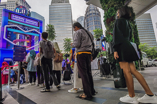 IDXChannel - Vice President, Head of Branding Lazada Indonesia Irene Inonu saat mencoba mesin diskon terbesar Festival belanja Lazada 11.11 Diskon Sebesar-besarnya di FX Sudirman, Jakarta, Selasa (8/11/2022).