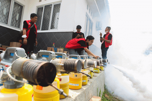 IDXChannel - Relawan Rolas Sitinjak Foundation melakukan fogging untuk mencegah penyebaran penyakit demam berdarah di pemukiman warga Desa Dukuhkarya, Kabupaten Karawang, Jawa Barat, Sabtu (14/1/2023).