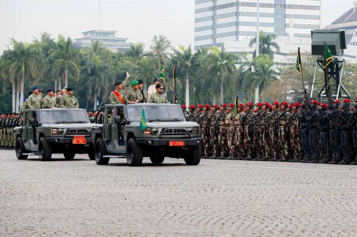 IDXChannel - Ribuan prajurit TNI melakukan parade defile dalam gladi bersih Hari Ulang Tahun (HUT) Tentara Nasional Indonesia (TNI) ke-80 di Lapangan Silang Monumen Nasional (Monas), Jakarta Pusat, Jumat (3/10/2025).