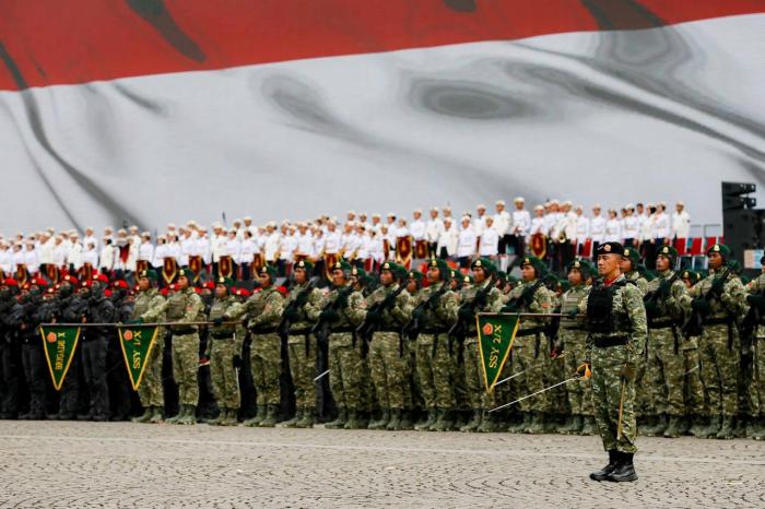 Langit ibu kota dihiasi atraksi pesawat tempur yang membuka jalannya gladi bersih, sebelum berlanjut dengan upacara resmi. Ribuan prajurit dari Angkatan Darat, Angkatan Laut, dan Angkatan Udara ikut ambil bagian, menciptakan suasana penuh semangat kebangsaan.