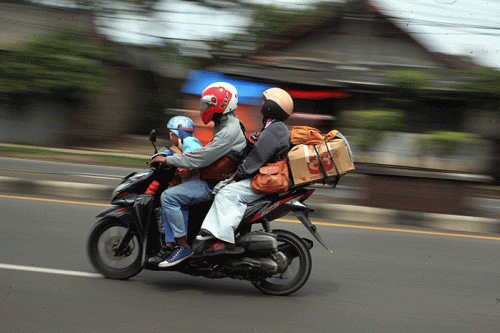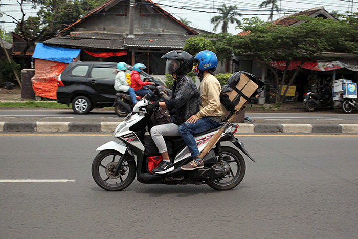 IDXChannel - Pemudik roda dua memacu kecepatan di jalur Pantura, Kabupaten Karawang, Jawa Barat, Selasa (18/4/2023).