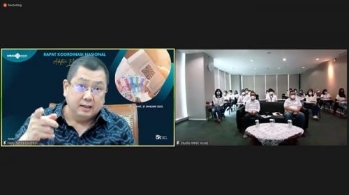 IDXChannel - Executive Chairman MNC Group Hary Tanoesoedibjo memberikan arahan di depan jajaran direksi dan karyawan saat Rapat Koordinasi PT MNC Asset Management secara virtual, Jumat (21/1/2022).
