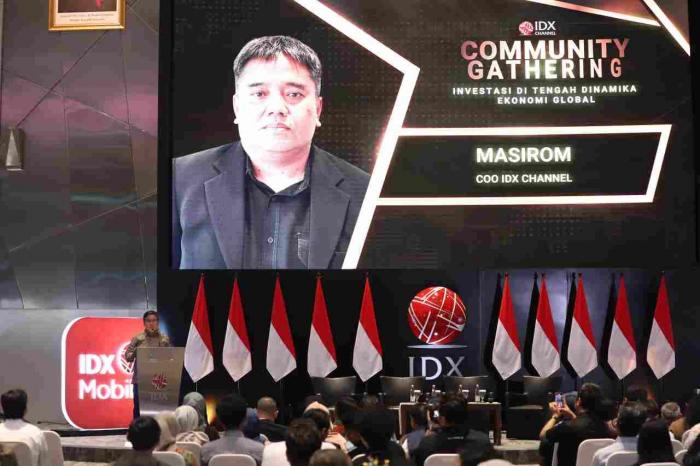 IDXChannel - COO IDX Channel Masirom memberikan sambutan saat membuka acara Community Gathering 2025 di Main Hall Bursa Efek Indonesia, Jakarta, Kamis (15/5/2025).