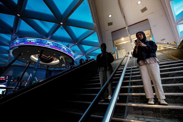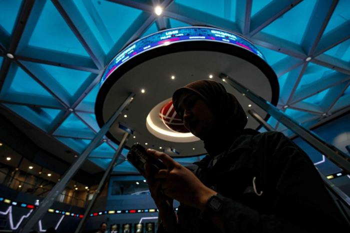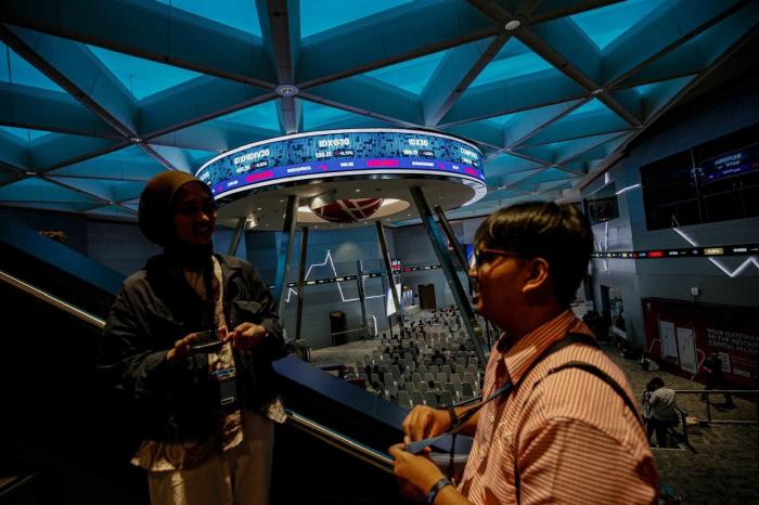 IDXChannel - Pekerja berdiri di dekat layar yang menampilkan pergerakan Indeks Harga Saham Gabungan (IHSG) di Bursa Efek Indonesia, Jakarta, Kamis (2/4/2026).