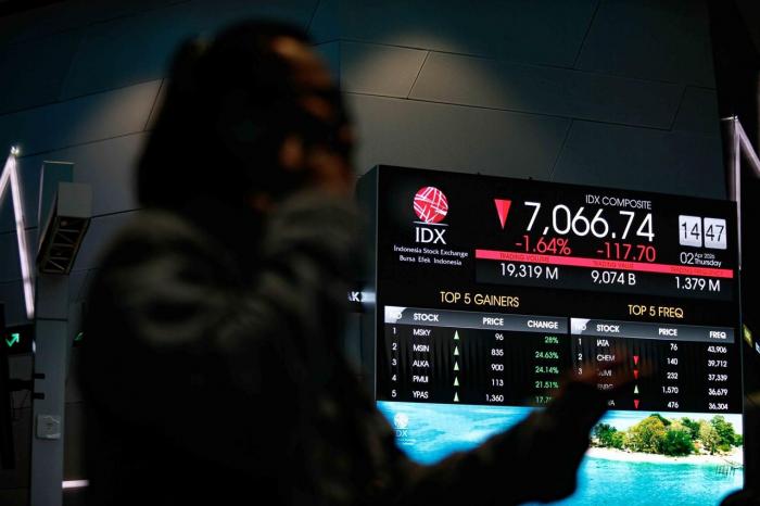 IHSG ditutup melemah 2,2 persen ke level 7.026,78 poin, berbalik arah setelah sempat mencatatkan penguatan pada perdagangan sebelumnya.