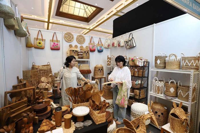 IDXChannel - Pengunjung melihat hasil kerajinan UMKM pada pameran International Handicraft Trade Fair (INACRAFT) 2025 Vol 4 di Jakarta International Convention Center, Jakarta, Kamis (2/10/2025).