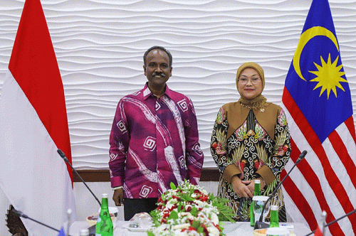IDXChannel - Menteri Ketenagakerjaan Ida Fauziyah menerima Kunjungan Kehormatan Menteri Sumber Manusia Malaysia, V. Sivakumar di Kantor Kementerian Ketenagakerjaan, Jakarta, Senin (20/2/2023).