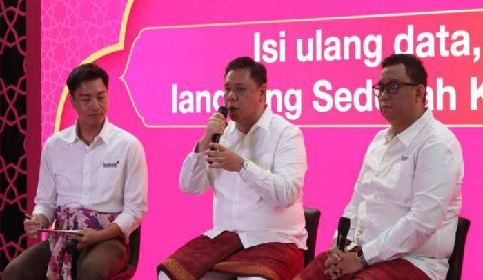 IDXChannel - (Kiri-kanan) Head of Corporate Communications IOH Steve Saerang, SVP-Head of Mass Market Growth IOH Saurabh Tamrakar, Chief Marketing Officer IOH Vivek Mehendiratta, Director and CCO IOH Ritesh Kumar Singh, SVP-Head of National TRI Brand Galuh Neftita, dan VP-Head of Growth Hack IOH M Kharisma Putra Tamara hadir pada konferensi pers Mudahnya Kebaikan #SedekahKuota, di Jakarta, Selasa (25/2/2025).