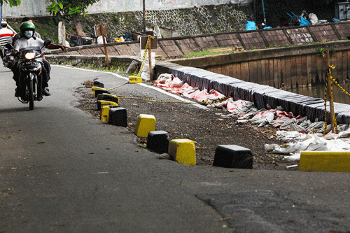 Jalan Inspeksi Kali Ciliwung yang berada di belakang Rumah Sakit Umum Pusat Nasional Dr. Cipto Mangunkusumo (RSCM) itu amblas sepanjang 40 meter pada bulan Januari yang lalu.
