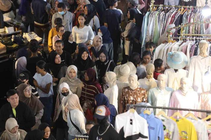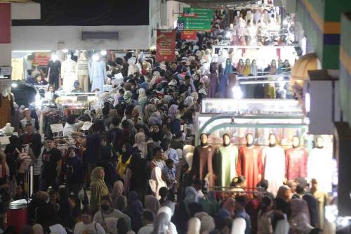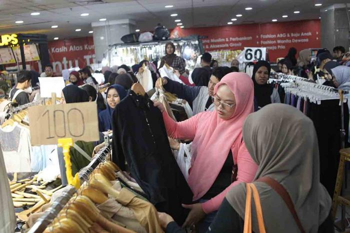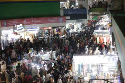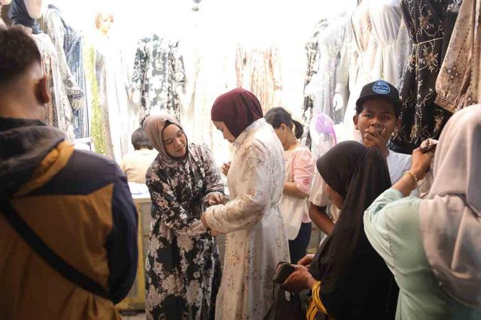 Sepekan menjelang Hari Raya Idulfitri 1447 Hijriah, pengunjung Pasar Tanah Abang membludak. Mereka membeli pakaian baru, termasuk busana muslim yang akan dipakai pada Lebaran nanti.