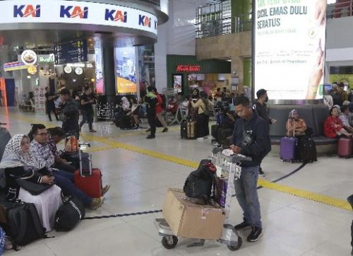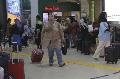 IDXChannel - Ratusan calon penumpang memadati ruang tunggu Stasiun Gambir, di Jakarta Kamis (21/12/2023).