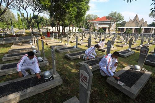 IDXChannel - Kementerian Sosial bersama Universitas Pertahanan (Unhan) Republik Indonesia melaksanakan kegiatan kerja bakti di Taman Makam Pahlawan Kalibata, Jakarta Selatan, Sabtu (30/10/2021).