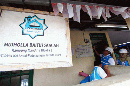 IDXChannel - General Manager PLN UID Jakarta Raya Doddy B. Pangaribuan (tengah) bersama Direktur Utama PT Haleyora Power Sinung Tri Wulandari meninjau instalasi listrik di Musholla Baitus Saja’ah Kampung Mandiri (Blok F2) RT. 009/04 Kel Ancol, Pademangan, Jakarta Utara, Rabu (15/3/2023).