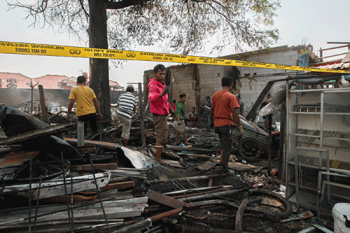 Puluhan lapak pengepul barang bekas di kawasan padat penduduk hangus terbakar, pada Rabu (25/8) malam. Selain lapak barang bekas, sejumlah rumah kontrakan warga pun ikut terbakar, kebakaran diduga disebabkan pekerja lapak yang lupa memadamkan api saat membakar sampah.