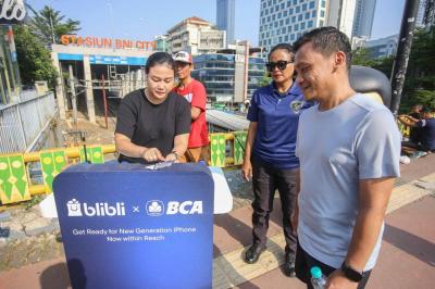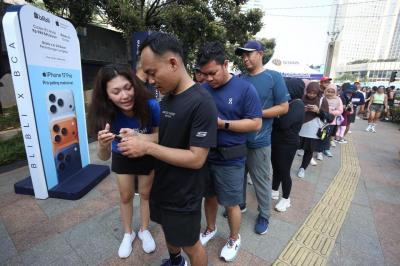 IDXChannel - Peserta mengantre di stamp station saat acara Blibli x BCA - Get Ready for the New Generation iPhone, Now Within Reach di Jakarta, Minggu (13/10/2025).
