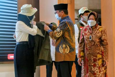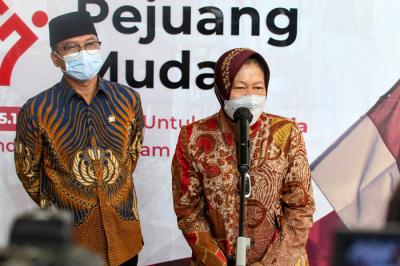 IDXChannel - Menteri Sosial Tri Rismaharini bersama Ketua Komisi VIII DPR RI Yandri Susanto saat meluncurkan Program Pejuang Muda, terdiri dari Mahasiswa yang akan Turun ke Masyarakat untuk Mencari Solusi Atasi Masalah Kemiskinan di Jakarta, Rabu (13/10/2021).