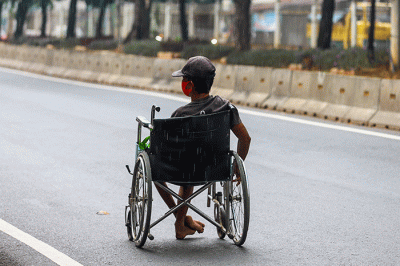 IDXChannel - Warga saat membantu Penyandang disabilitas melewati jalan raya di kawasan Jakarta Barat, Minggu (29/8/2021).