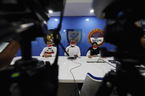 IDXChannel - Kepala BP2MI Benny Rhamdani (tengah) bersama Inspektur BP2MI Firdaus Zazali (kiri) dan Kepala Biro Sumber Daya Manusia Dan Organisasi Sri Andayani memberikan keterangan kepada wartawan saat jumpa pers di Jakarta, Rabu (10/8/2022).