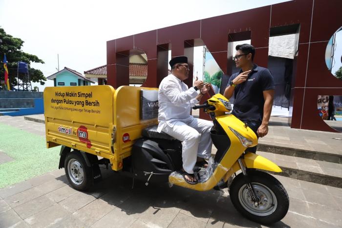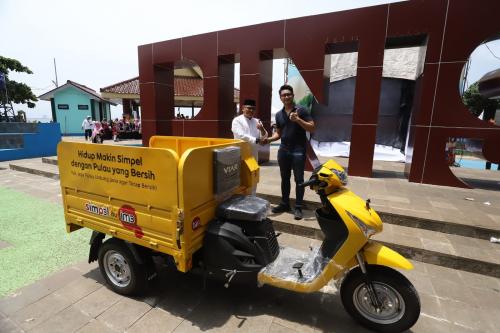SVP Head of Region Inner Jakarta Indosat, Shatya Framudia, menyerahkan bantuan CSR berupa motor gerobak sampah kepada warga di Pulau Untung Jawa, Kepulauan Seribu, Sabtu (14/2). Bantuan ini merupakan bagian dari komitmen Indosat dalam mendukung pemberdayaan masyarakat sekaligus menjaga kebersihan lingkungan.