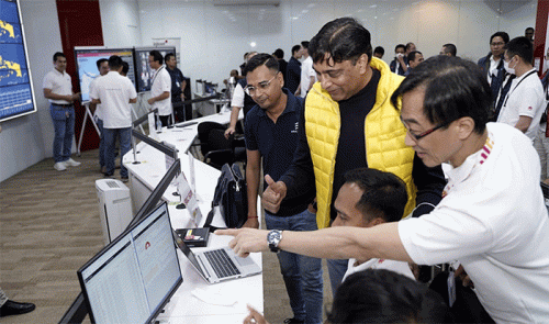 IDXChannel - Presiden Direktur & CEO Indosat Ooredoo Hutchison, Vikram Sinha (kiri) dan Chief Technology Officer Indosat Ooredoo Hutchison, Desmond Cheung berbincang dengan tim Network Operations yang melakukan pemantauan kapasitas jaringan, yang disiapkan 50% lebih besar dari rata-rata trafik harian normal untuk mendukung aktivitas digital pelanggan yang banyak menggunakan aplikasi berbasis video seperti YouTube, Facebook, dan TikTok di Jakarta, Sabtu (31/12/2022).