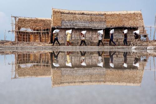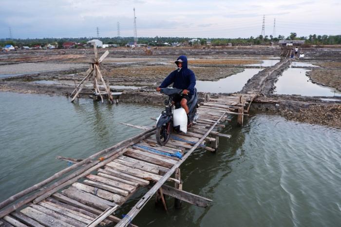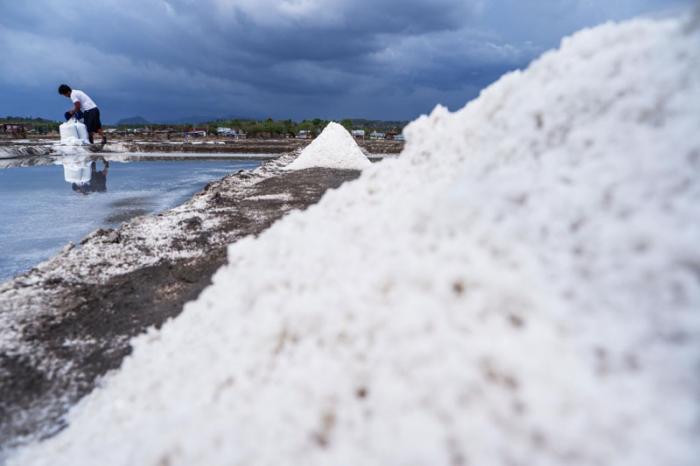 IDXChannel - Pekerja mengumpulkan hasil panen garam di Desa Bontomanai, Kabupaten Takalar, Sulawesi Selatan, Minggu (26/11/2023). Kementerian Kelautan dan Perikanan (KKP) telah menargetkan produksi garam nasional pada tahun 2023 dan 2024 sebesar 2 juta ton per tahun.