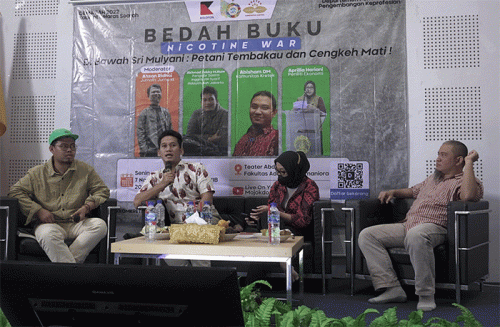 IDXChannel - Komunitas Kretek bekerja sama dengan DEMA Fakultas Adab dan Humaniora UIN Syarif Hidayatullah Jakarta menggelar bedah buku Nicotine War karya Wanda Hamilton di Teater Abdul Ghani, Fakultas Adab dan Humaniora, UIN Syarif Hidayatullah.